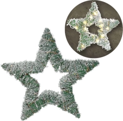De 40 geïntegreerde LED’s in warm wit lichten de stervorm gelijkmatig uit, terwijl de timerfunctie de verlichting na 6 uur automatisch uitschakelt en na 18 uur weer inschakelt. De decoratie is bedoeld voor binnengebruik en is perfect als kerstkrans voor de deur of als los lichtobject.