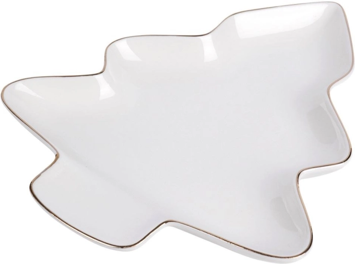 Creëer een sfeervolle feesttafel met dit porseleinen bord in de vorm van een kerstboom. Tijdloos wit met een gouden rand laat lekkernijen extra opvallen en geeft je tafel een elegante touch tijdens het winter- en kerstseizoen.