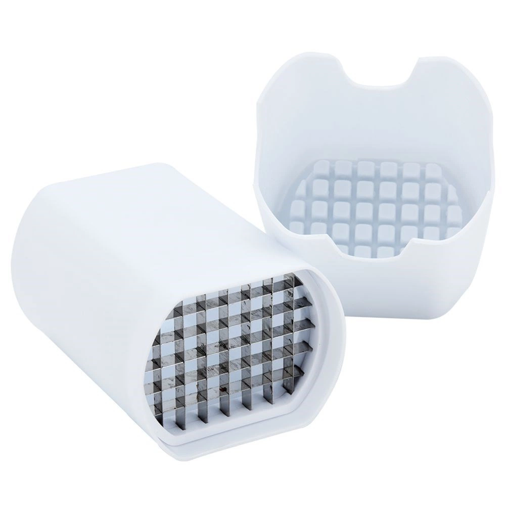 Maak in enkele seconden knapperige, zelfgemaakte friet. De handmatige snijder met roestvrijstalen raster snijdt aardappelen en andere ingrediënten snel en precies in gelijkmatige staafjes of blokjes. De duurzame witte behuizing van kwaliteitskunststof zorgt voor stabiliteit en een lange levensduur, terwijl de scherpe roestvrijstalen messen een schone snede zonder moeite garanderen.