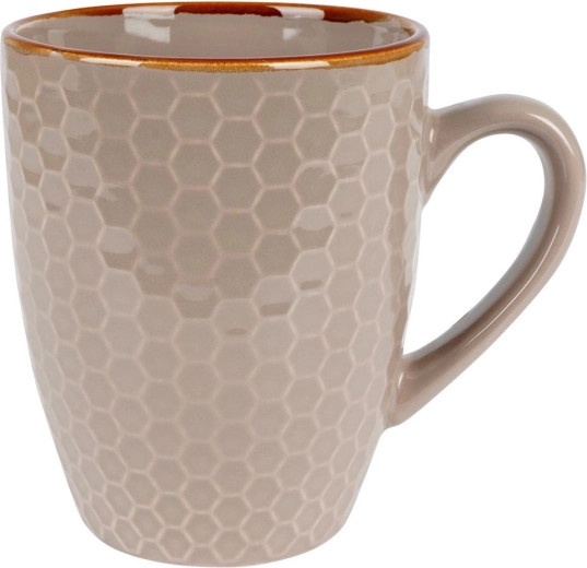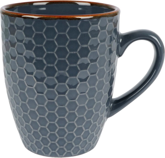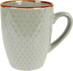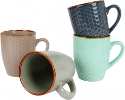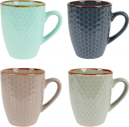 Elke mok is versierd met een reliëf geometrisch patroon en een contrasterende bruine rand. Vier aantrekkelijke kleuren geven je keuken flair en zijn makkelijk te combineren met de rest van je servies.