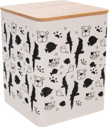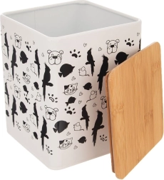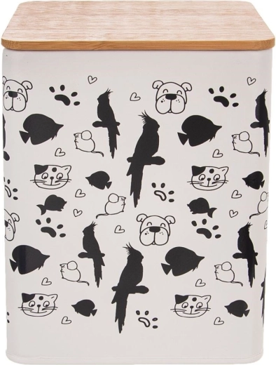 Stijlvolle metalen voeropslag met een inhoud van 3 l houdt brokjes en snacks langer vers. Hij heeft compacte afmetingen van 14 × 14 × 17 cm, een bamboe deksel met siliconen afdichting voor perfecte luchtdichtheid, is duurzaam, praktisch en dankzij het dierenmotief ook een decoratieve toevoeging aan je keuken.