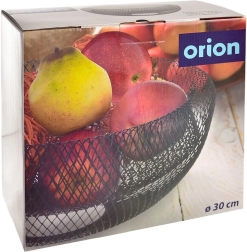 Stijlvolle metalen fruitmand RADKA met een diameter van 30 cm en een hoogte van 14 cm, ideaal voor dagelijks gebruik in de keuken en eetkamer. Dankzij de open rasterconstructie zorgt hij voor luchtcirculatie, waardoor fruit langer vers blijft. De duurzame metalen uitvoering in matzwart oogt modern en past in moderne, industriële en glamoureuze interieurs. De mand is stabiel, praktisch en multifunctioneel – perfect voor fruit, brood en kleine spulletjes.