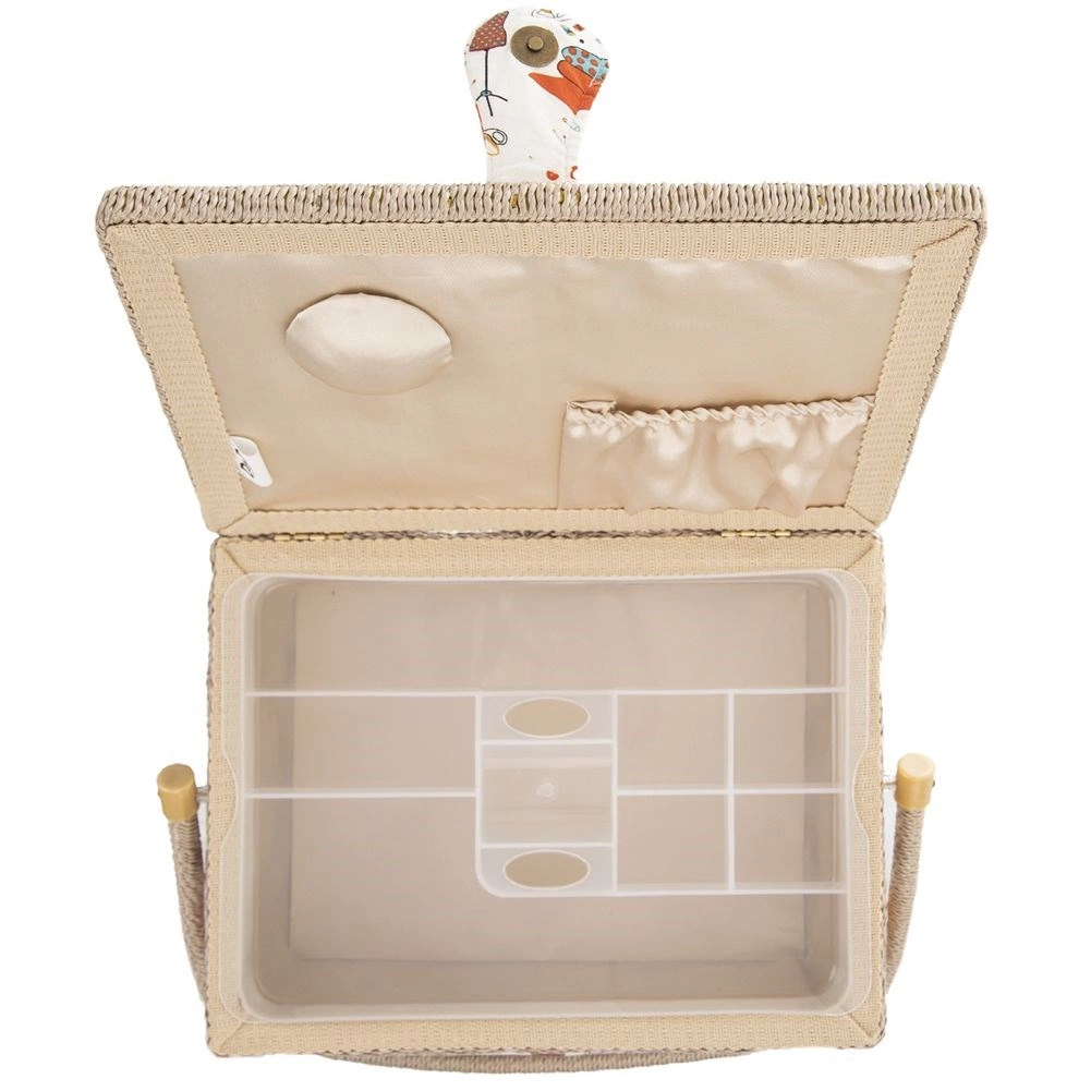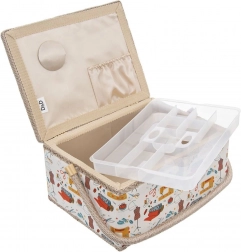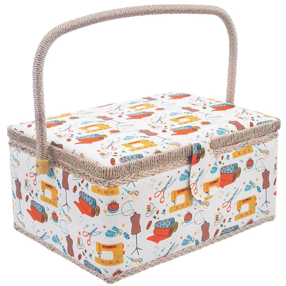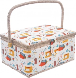 Stijlvolle en degelijk afgewerkte naaidoos in mandvorm houdt je naaibenodigdheden altijd op hun plek. De buitenbekleding met kleurrijke kleermakersmotieven laat zich makkelijk combineren met het interieur van je naaiplek. Dankzij de compacte afmetingen is hij ideaal voor thuisnaaien én om mee te nemen naar cursussen en workshops.