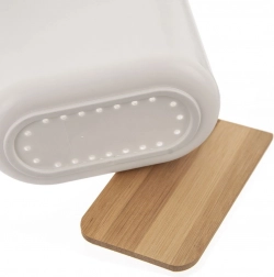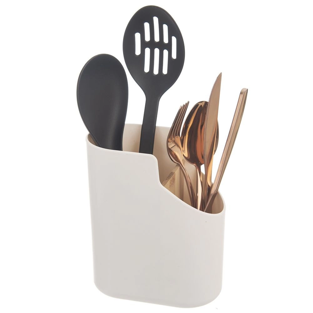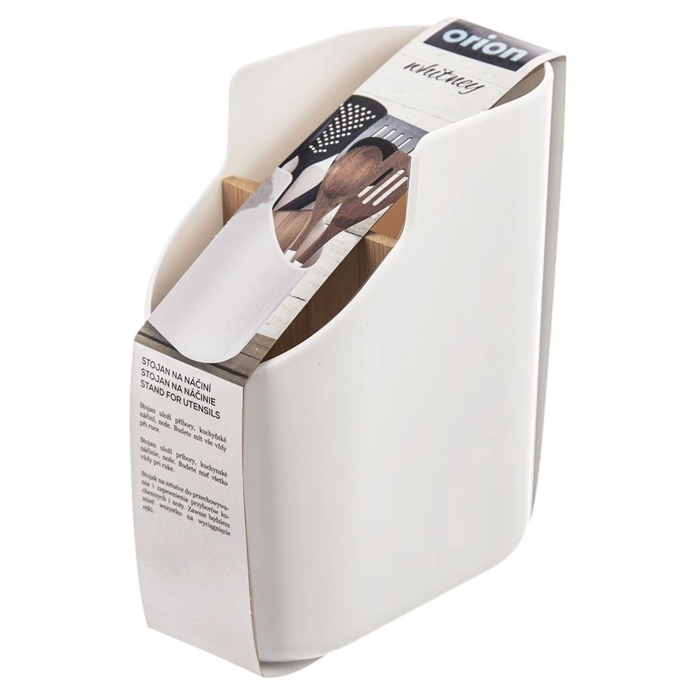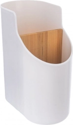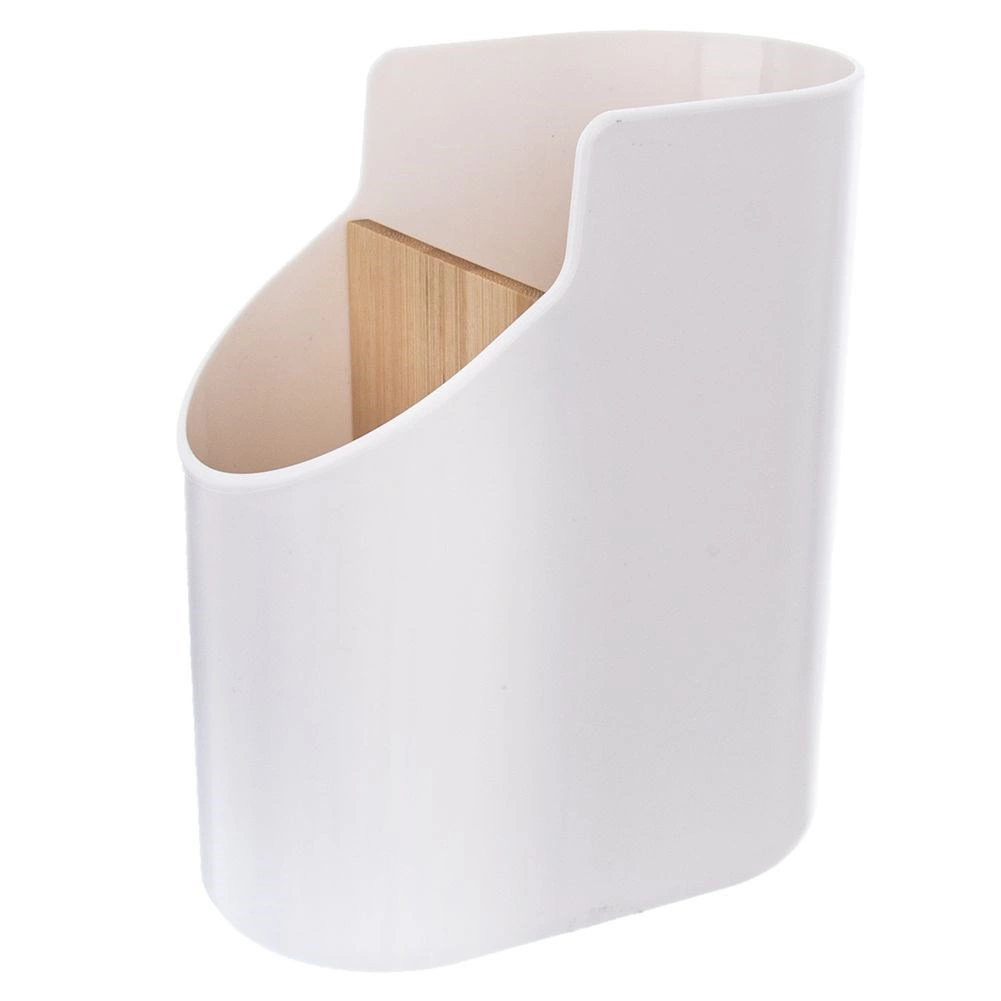Houd je keuken schoon en geordend met de elegante WHITELINE‑houder. De combinatie van mat wit en natuurlijk bamboe oogt modern en past in elk interieur. Twee afzonderlijke secties maken het eenvoudig om bestek en keukengerei te sorteren, terwijl de geperforeerde bodem helpt bij het afvoeren van water na het afwassen.