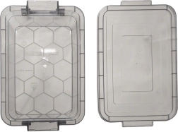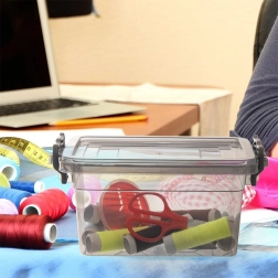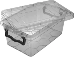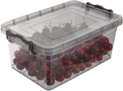 De praktische box met een inhoud van 5 liter is ideaal voor het overzichtelijk opbergen van fruit, groenten, droge etenswaren, maar ook kleine spullen in huis, op kantoor of in de werkplaats. Twee zijdelingse klemmen houden het deksel stevig op zijn plaats, zodat de inhoud beschermd is tegen vocht en stof. Dankzij de heldere behuizing zie je meteen wat erin zit.