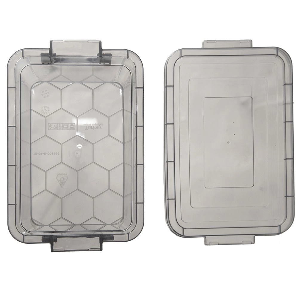Twee zijdelingse klemmen vergrendelen het deksel betrouwbaar, beschermen de inhoud tegen stof en vocht en maken dragen makkelijker.