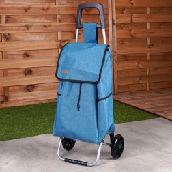 De lichte maar stevige boodschappenwagen is ideaal voor elke boodschap en op reis. De ergonomische handgreep, stabiele voetsteun en twee grote wielen zorgen voor gemakkelijk sturen en parkeren. De blauwe tas in een elegante marineblauwe tint is afneembaar en eenvoudig te reinigen.