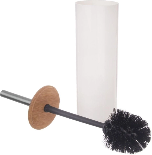 De elegante wc-borstel met houder WHITNEY in het wit combineert een minimalistisch design, een bamboe deksel en een roestvrijstalen handgreep. Dankzij de dichte zwarte vezels en de verwisselbare kop houd je het toilet moeiteloos perfect schoon, terwijl de gesloten houder zorgt voor een hygiënische en esthetische opberging.