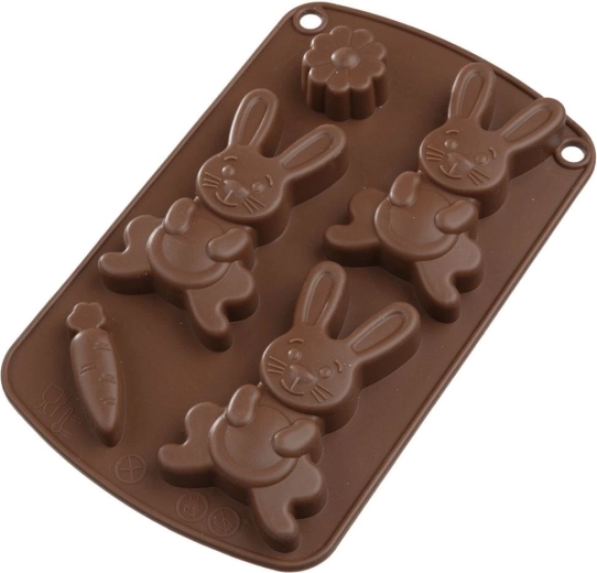 Siliconen vorm met motieven van konijntjes, worteltjes en bloemen voor het eenvoudig maken van pralines, chocolaatjes en koekjes. Is hittebestendig van -40 °C tot +220 °C, geschikt voor oven, magnetron en vriezer en kan in de vaatwasser. Dankzij het antiaanbakoppervlak haal je de vormen gemakkelijk eruit en is de vorm makkelijk schoon te maken.