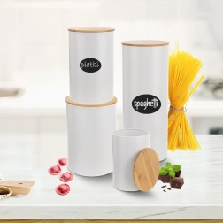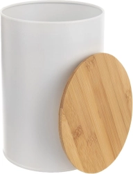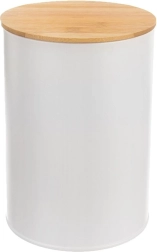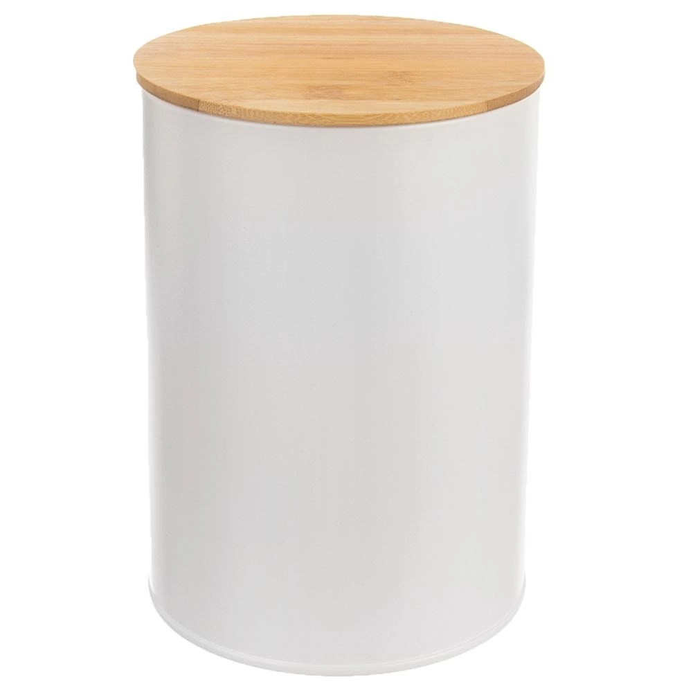Deze praktische doos is ideaal voor het dagelijks bewaren van etenswaren zoals koffie, thee, suiker, pasta, noten of gedroogde kruiden. Het hoogwaardige metaal in mat wit oogt stijlvol en is eenvoudig te onderhouden, terwijl het natuurlijke bamboe deksel een warme touch toevoegt.