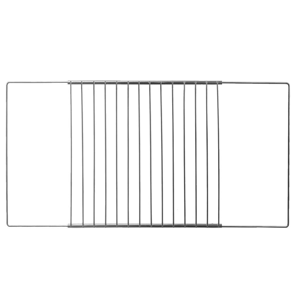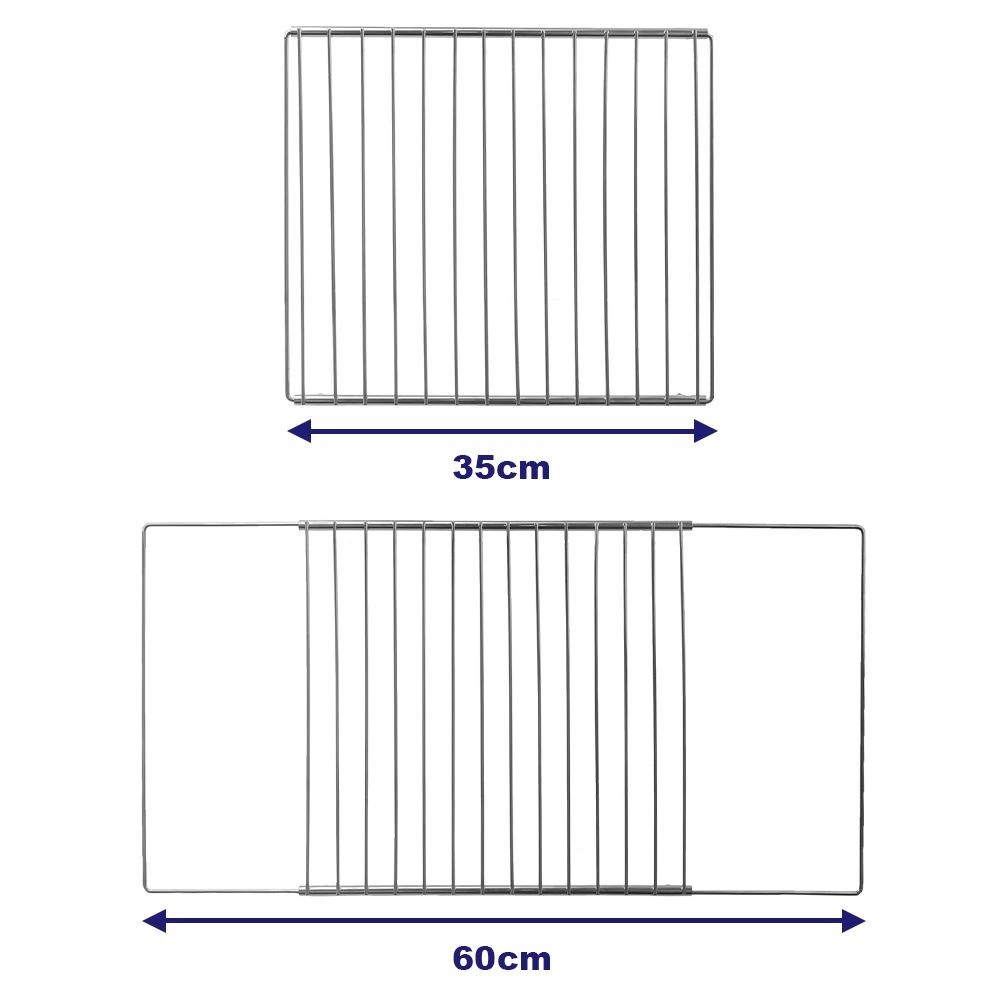 Praktisch ovenrooster van hoogwaardig verchroomd staal dat je eenvoudig aanpast aan de breedte van je oven. De lengte is verstelbaar van 35 tot 60 cm en wordt vastgezet met meegeleverde schroefjes. De open roosterconstructie ondersteunt een gelijkmatige circulatie van hete lucht, waardoor vlees en gebak mooi gaar en knapperig worden.