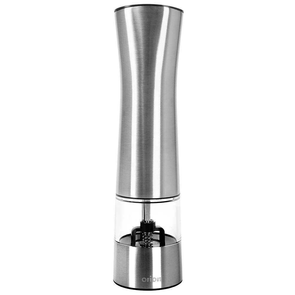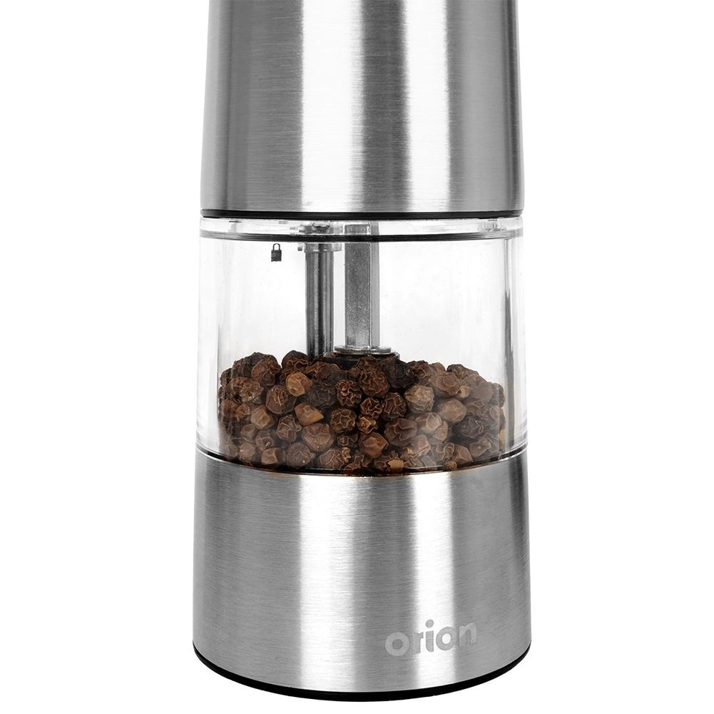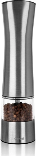 Elegante elektrische molen van roestvrij staal voor peper, zout en andere specerijen zorgt met één druk op de knop voor versgemalen ingrediënten. Voorzien van een keramisch maalwerk, traploze grofheidsregeling en veiligheidsvergrendeling. Werkt op 6× AAA voor comfortabel éénhandig bedienen en een moderne uitstraling op elke tafel.