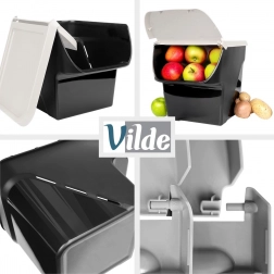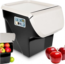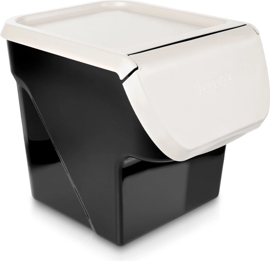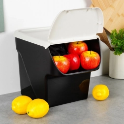 Houd keuken en voorraadkast perfect georganiseerd. De duurzame opbergbox met een naar voren openslaande klep maakt snel bijvullen en uitnemen mogelijk zonder het volledige deksel te verwijderen. Dankzij de tijdloze combinatie van een zwarte bak en een lichtgrijs deksel past hij in elk interieur.