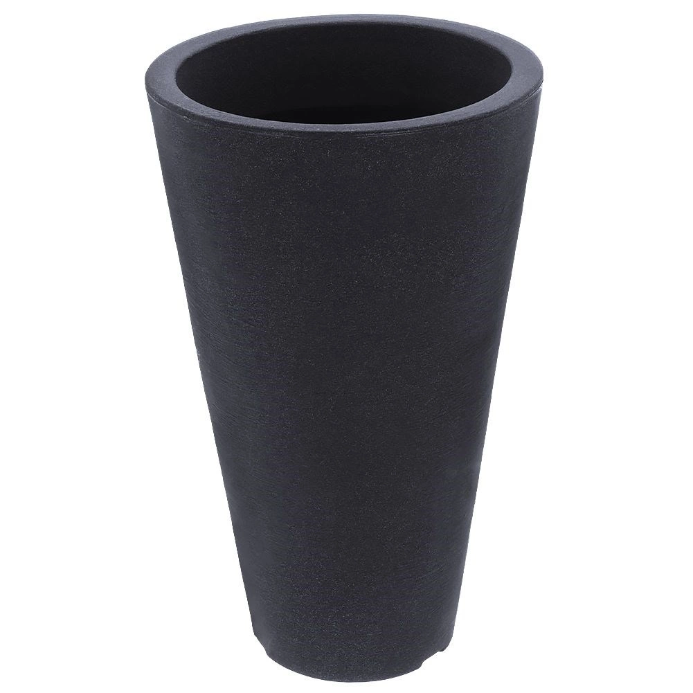 Deze hoge conische bloempot in elegant antraciet valt op door zijn minimalistische look en veelzijdige inzet. Het materiaal met steenlook is licht, stevig en eenvoudig te reinigen – vuil spoel je gewoon af met water.