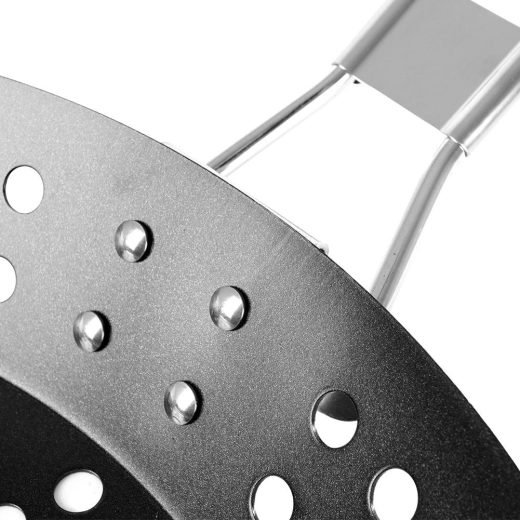 De fijne perforaties houden groenten, zeevruchten en kleine stukjes vlees op hun plaats en laten tegelijk warmte en rook door voor een intense smaak.