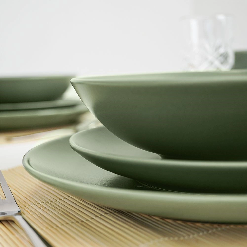 De subtiel matte groene glazuur en de strakke lijnen geven je tafel een frisse en elegante uitstraling. Makkelijk te combineren met andere items uit de Alfa-serie.