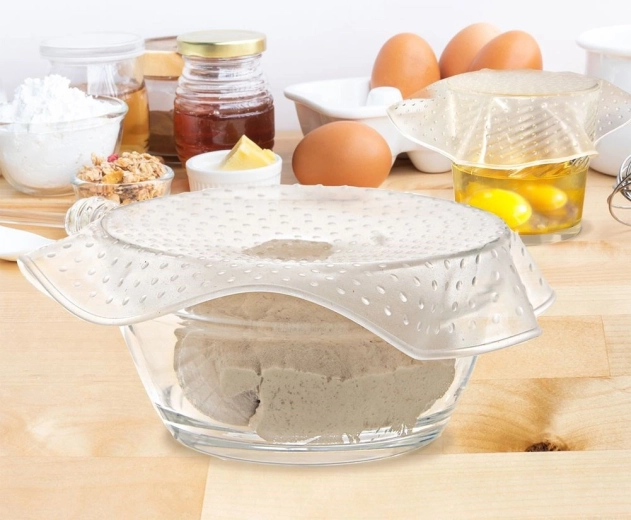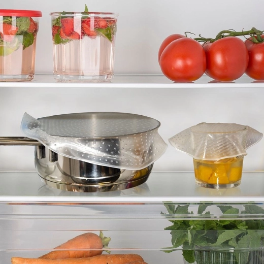 Het elastische, transparante siliconen rekt eenvoudig over de rand en helpt een dichte afsluiting te creëren tegen uitdroging en geuren.