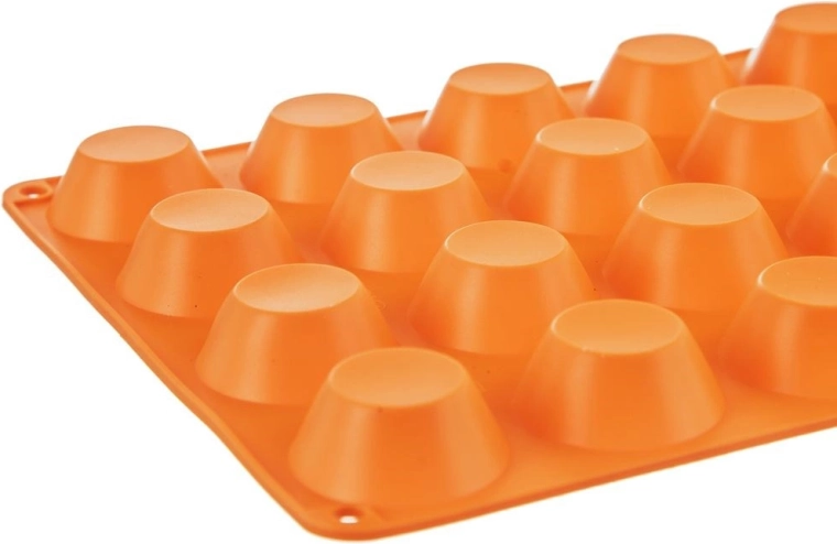 Deze rechthoekige siliconen vorm in oranje is een uitstekende keuze voor het snel bereiden van mini-muffins en cupcakes. Dankzij het flexibele materiaal is hij licht, gemakkelijk op te bergen en neemt hij weinig ruimte in – u kunt hem eenvoudig oprollen. Siliconen neemt geen geuren op en absorbeert geen vloeistoffen, wat zorgt voor een lange levensduur en hygiënisch gebruik.