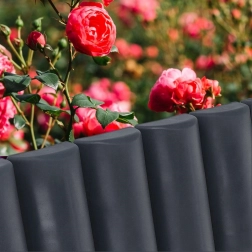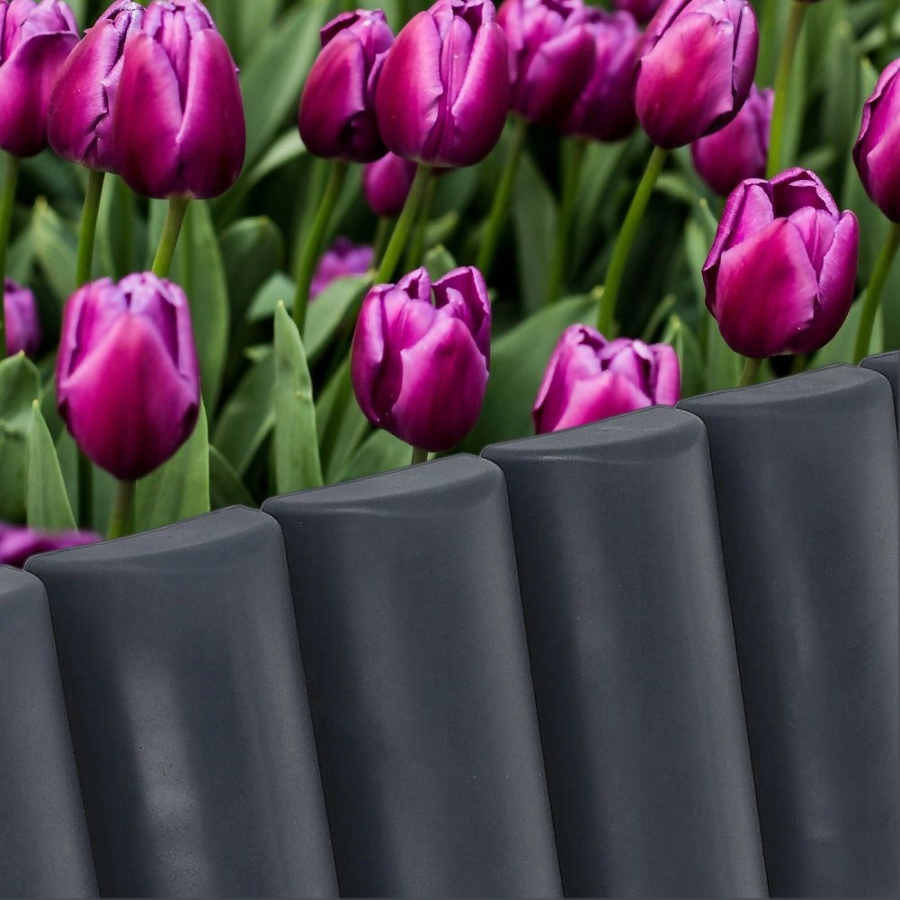 De tuinpalisade met een segmentlengte van 25 cm is een uitstekende oplossing voor een overzichtelijke en esthetische scheiding van gazon, bloemenborders of mulch. De elegante grafietkleur past in zowel moderne als klassieke tuinen en accentueert de lijnen van de beplanting.