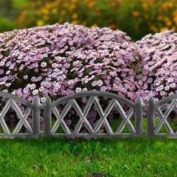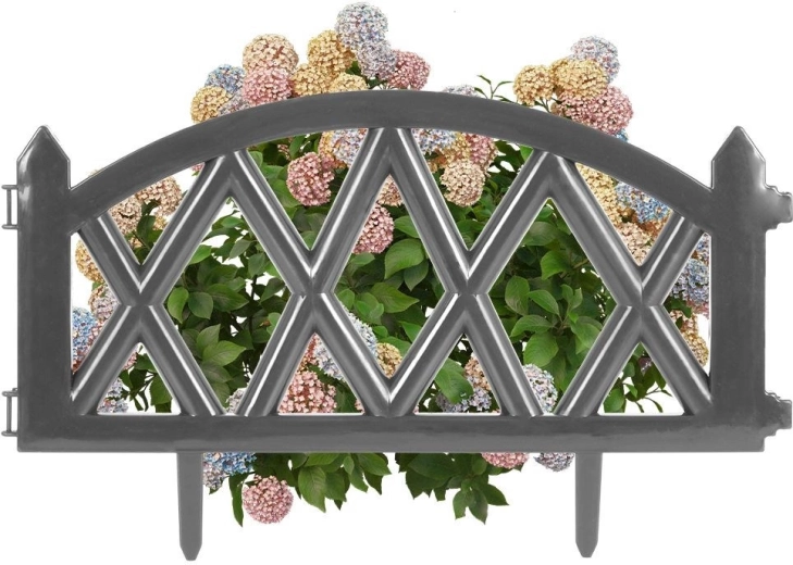 Verfraai je tuin met een decoratief hekje in een elegante grafiettint. Het lage profiel met een boog- en roostermotief omlijst prachtig bloemperken, gazon en paadjes en houdt de randen netjes en overzichtelijk.