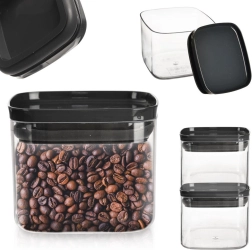 Deze veelzijdige kunststof doos is ideaal voor het dagelijks bewaren van droge en losse voedingsmiddelen. De siliconen afdichting in het deksel biedt een betrouwbare afsluiting die beschermt tegen vocht en de smaak en geur van producten bewaart, zoals koffie, suiker, noten, pasta, muesli of havervlokken. Dankzij het transparante ontwerp zie je meteen de hoeveelheid en inhoud zonder te openen.