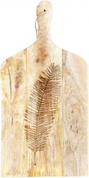 Ontdek de tijdloze plank van mangohout die in de keuken zowel dagelijks snijden als fraai serveren aankan. Aan één zijde siert een elegant bladreliëf het oppervlak, wat het tafelen een natuurlijke touch geeft. De robuuste dikte van 2 cm zorgt voor stabiliteit en een lange levensduur, terwijl de fijne houtnerf het unieke karakter van elk stuk benadrukt.
