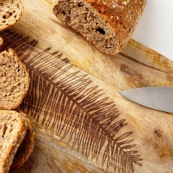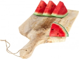 Het decoratieve bladreliëf tilt de plank naar een designstuk. Gebruik haar niet alleen om te snijden, maar ook voor het fraai presenteren van kazen, brood of fruit.
