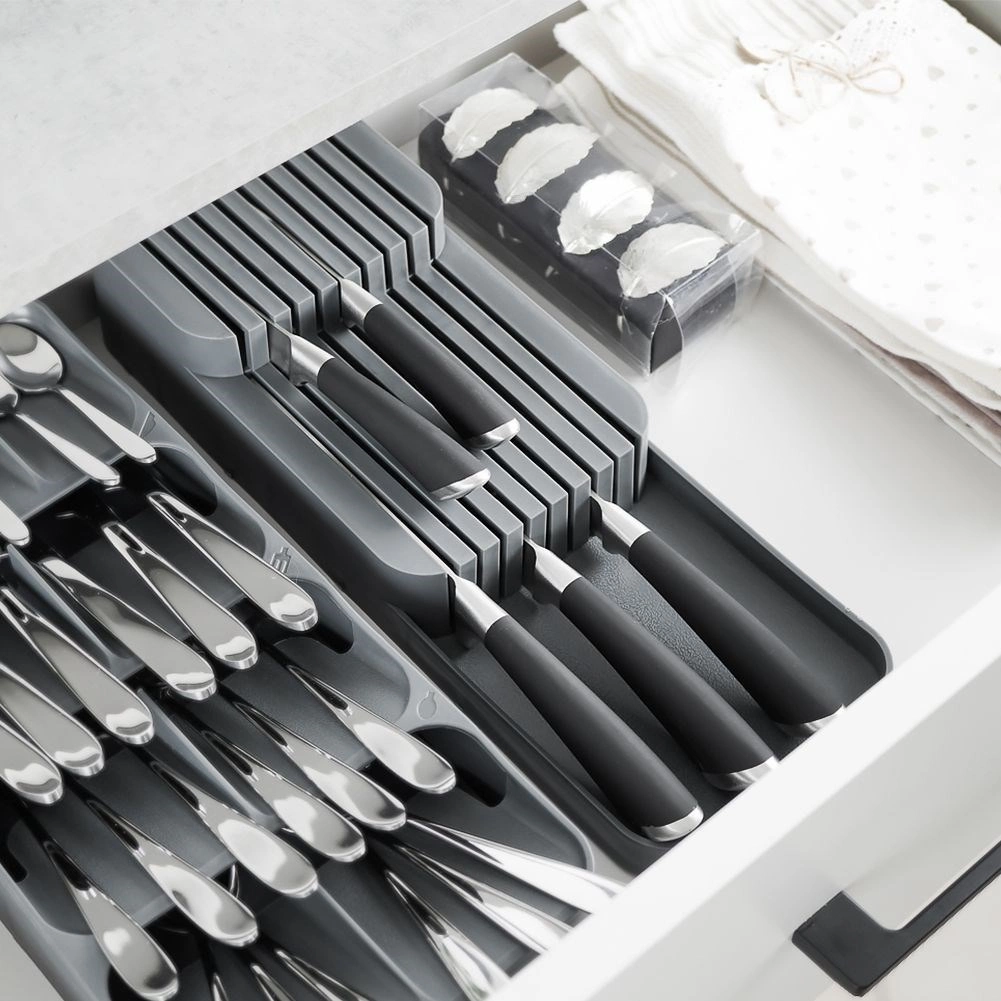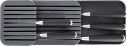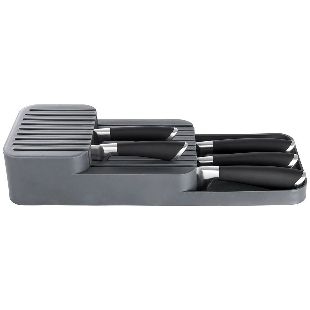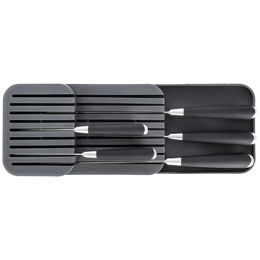 De getrapte, meerlaagse constructie maakt het mogelijk meer messen op te bergen op minder ruimte en houdt de lade netjes.