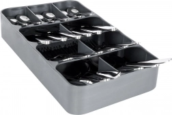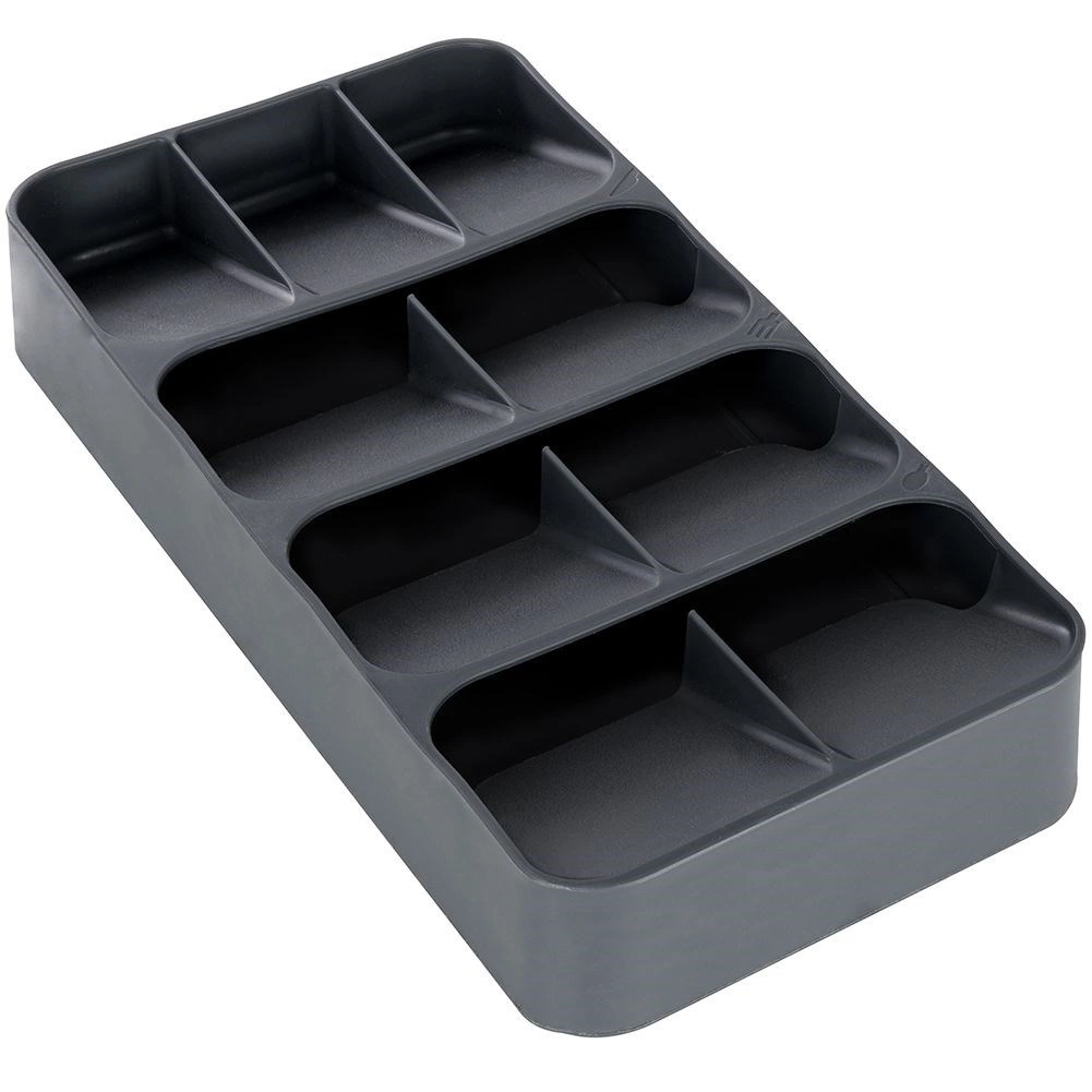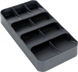 Robuust grijs plastic zorgt voor een lange levensduur en eenvoudig onderhoud. De klassieke maat past probleemloos in gangbare laden en kasten, zodat je snel een systeem zonder rommel creëert.