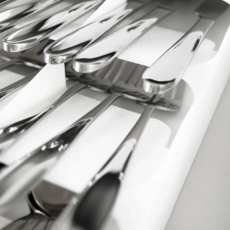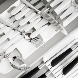 De duurzame kunststof uitvoering is licht, hygiënisch en gemakkelijk schoon te maken. Door de slimme constructie wordt bestek opbergt op tot vier niveaus, wat de ruimte maximaliseert en schuiven van de inhoud in de lade voorkomt. De ideale oplossing voor dagelijkse orde en snelle toegang tot je bestek.