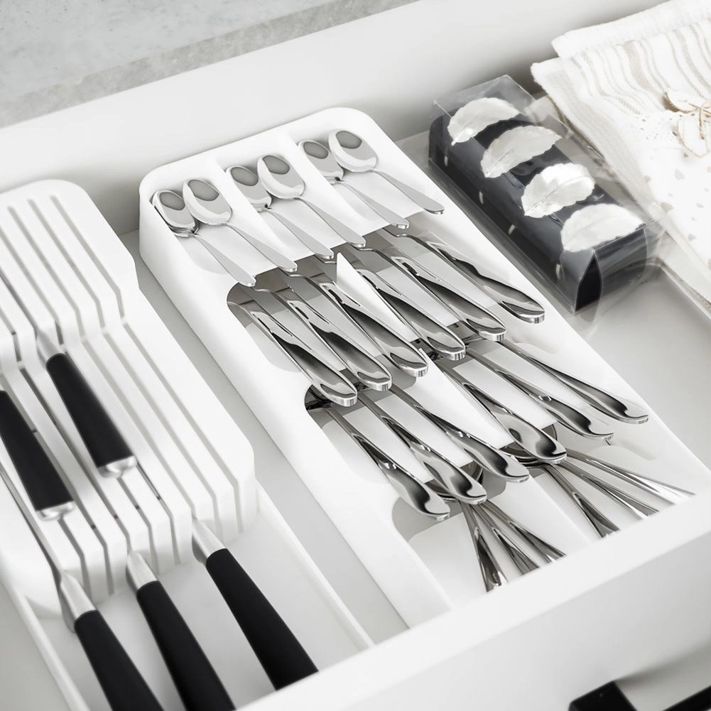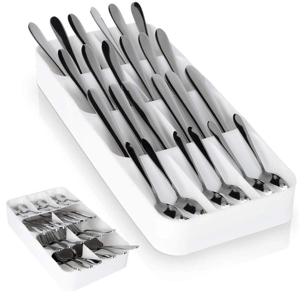 De slimme meerlagige indeling en 9 vakken houden lepels, vorken en messen perfect overzichtelijk en altijd binnen handbereik.