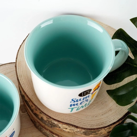 Geniet van je favoriete drankje in een elegante mok van hoogwaardig porselein. De combinatie van wit met een zomerse print en een mintkleurig interieur geeft je tafel een frisse uitstraling. Dankzij het ergonomische oor ligt de mok prettig in de hand en is hij perfect voor dagelijks gebruik.