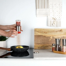 De elegante metalen behuizing ligt prettig in de hand, het antislip-element zorgt voor een zekere greep en eenvoudig malen, zelfs met één hand. Het praktische deksel beschermt de inhoud tegen lucht en vocht, zodat de specerijen langer vers en aromatisch blijven.