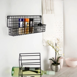Deze zwarte metalen kruidenplank helpt slim de verticale ruimte te benutten en houdt je kruiden, cosmetica of kleine spullen altijd overzichtelijk binnen handbereik. Het minimalistische draaddesign in industriële LOFT-stijl past in zowel moderne als klassieke interieurs.
