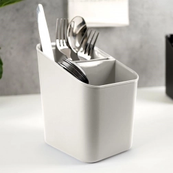 Het uitneembare inzetstuk creëert twee secties om lepels, vorken en messen te scheiden. Verwijder je de scheidingswand, dan krijg je een ruime houder met één compartiment.