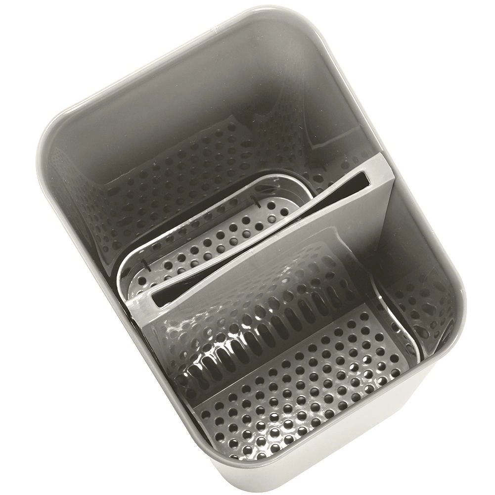 De geperforeerde bodem en het uitneembare inzetstuk zorgen ervoor dat water naar beneden wegloopt en bestek niet in het vocht blijft staan. Het aanrecht blijft schoon en droog.