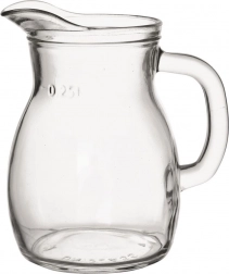 Praktisch glazen kannetje met een totale inhoud van 300 ml en markering 0,25 l voor nauwkeurig doseren. Gemaakt van duurzaam helder glas, met een comfortabel oor en een gevormde tuit voor schoon schenken. Geschikt voor melk, room, wijn, water, sap en sauzen, vaatwasser- en magnetronbestendig. Maximale dranktemperatuur 60 °C.