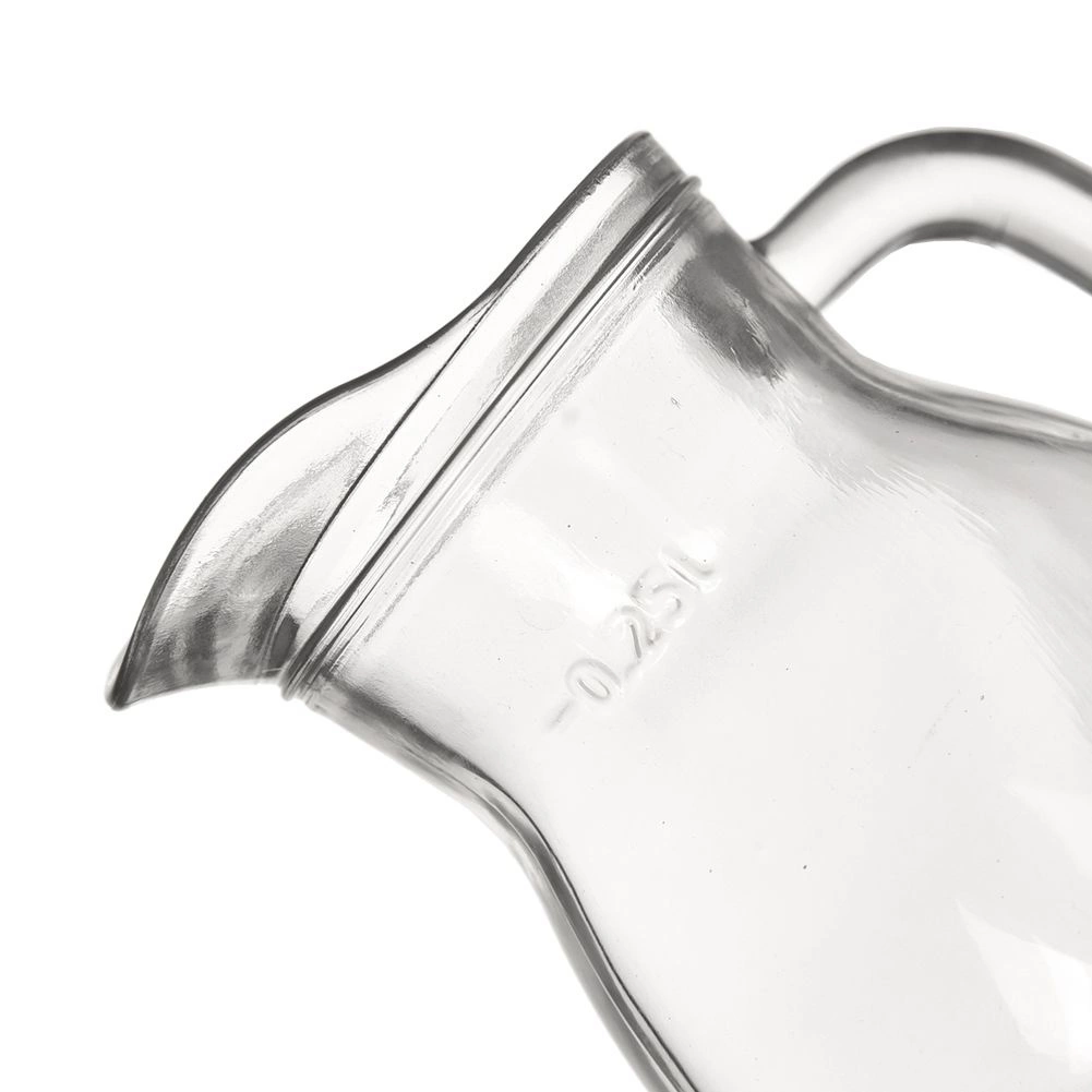 Het universele glazen kannetje is ideaal voor de keuken en de horeca. Dankzij het heldere ontwerp past het elegant bij elke tafelsetting en kun je de hoeveelheid drank eenvoudig controleren. De praktische accentuering van 0,25 l maakt nauwkeurig serveren makkelijk.