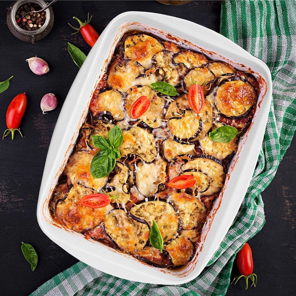 Deze rechthoekige ovenschaal van hoogwaardig porselein is ideaal voor hartige en zoete recepten – van lasagne, gegratineerde aardappelen en groenten tot desserts zoals tiramisu. Dankzij de gelijkmatige warmteverdeling worden gerechten perfect gegaard, terwijl het gladde, geglazuurde interieur het uitnemen en reinigen vergemakkelijkt.
