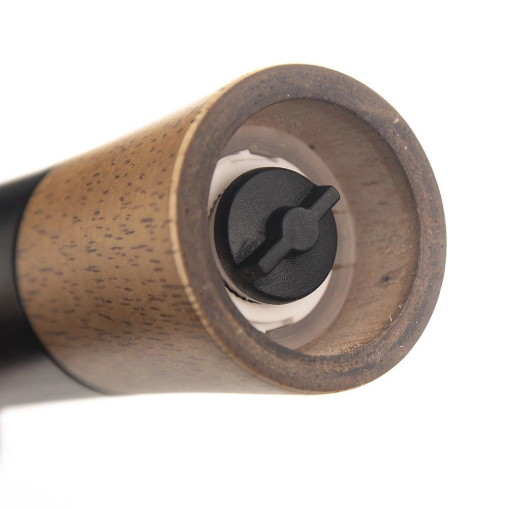 De handmatige houten molen uit de Wooden-serie is ontworpen voor dagelijks malen van peper, zout en droge mixen. De behuizing van rubberboomhout met zwarte band ligt comfortabel in de hand en het keramische mechanisme kan ook hardere korrels aan. Dankzij de mogelijkheid tot instellen van de maalgraad kies je eenvoudig een fijne of grove maling, precies volgens het recept.