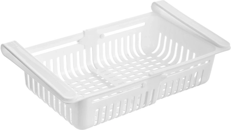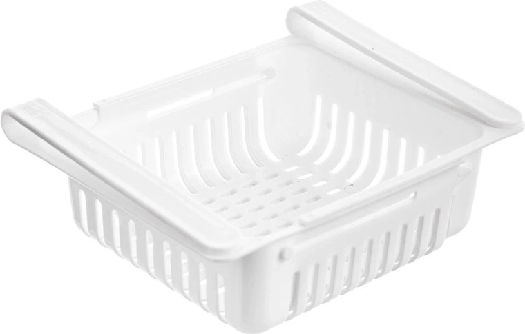 Praktisch hangmandje voor in de koelkast, uitschuifbaar van 21 tot 28,7 cm, waarmee je de ruimte onder de plank slim benut. Het is licht, duurzaam en eenvoudig te monteren zonder gereedschap. Dankzij de geventileerde constructie blijven voedingsmiddelen langer vers en heb je alles overzichtelijk bij de hand. Uittrekbare lengte, eenvoudige installatie onder de plank, stevige uitvoering en ventilatieopeningen voor een betere luchtcirculatie.