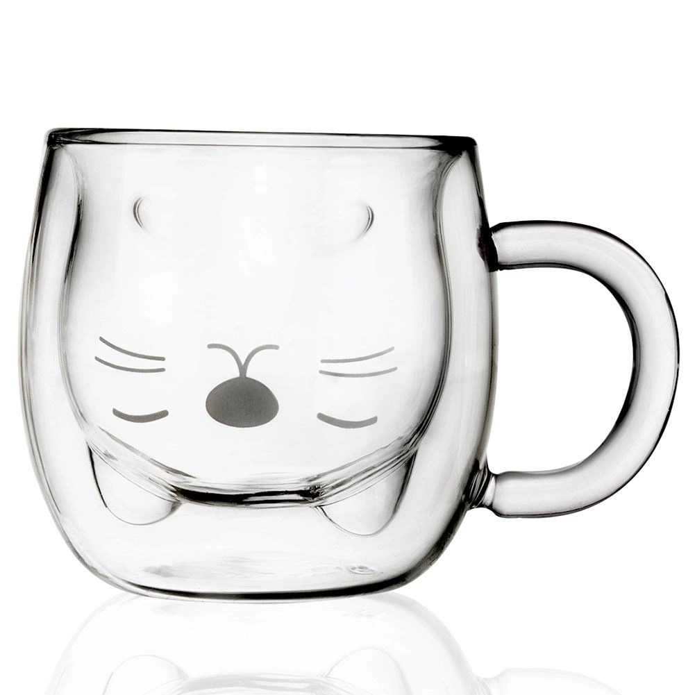 Geniet van koffie of cacao in een schattig glas met kattenmotief dat dankzij de dubbele wand je drankje langer warm of koud houdt, terwijl het buitenoppervlak koeler aanvoelt. Het glas is gemaakt van duurzaam borosilicaatglas, dat beter bestand is tegen thermische schokken en licht in de hand ligt.