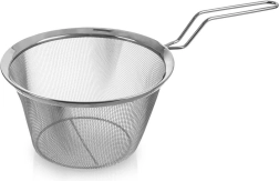 Praktisch metalen mandje voor diep frituren, afgieten van pasta en groenten en als inzet in de pan voor stomen. Heeft een fijn roestvrijstalen gaas, een stevig frame en een lange handgreep voor veilige handling. Vaatwasmachinebestendig.