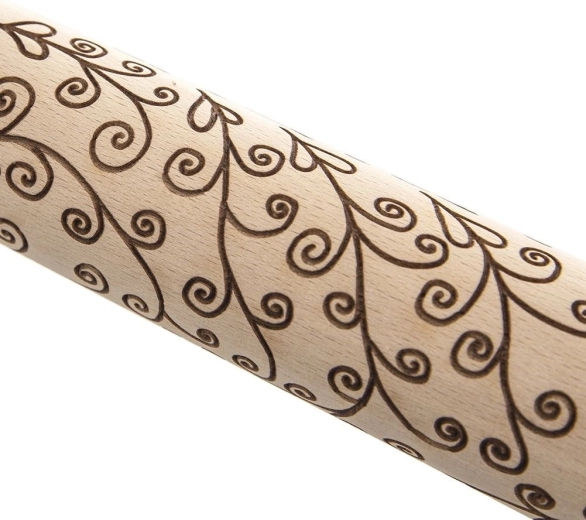 Ontdek comfortabel decoreren van deeg met een kwalitatieve houten deegroller die het deeg tijdens het uitrollen direct een elegant plantaardig patroon geeft. Het draaiende deel zorgt voor een soepele loop, zodat u een gelijkmatige afdruk bereikt zonder onnodige inspanning. Ideaal voor koekjes, taarten, zanddeeg, peperkoek en voor werken met fondant en marsepein.