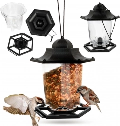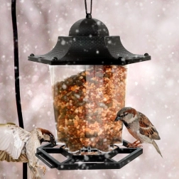 Stijlvolle en functionele voeder voor wilde vogels die perfect past in elke tuin, op het terras of balkon. De transparante behuizing biedt direct zicht op het zaadniveau, terwijl de bredere basis vogels comfortabele landing tijdens het voeren geeft. Het dak beschermt het voer tegen regen en sneeuw, waardoor de voeder ideaal is voor winterse bijvoerbeurten en zomerse observatie van gevederde bezoekers.
