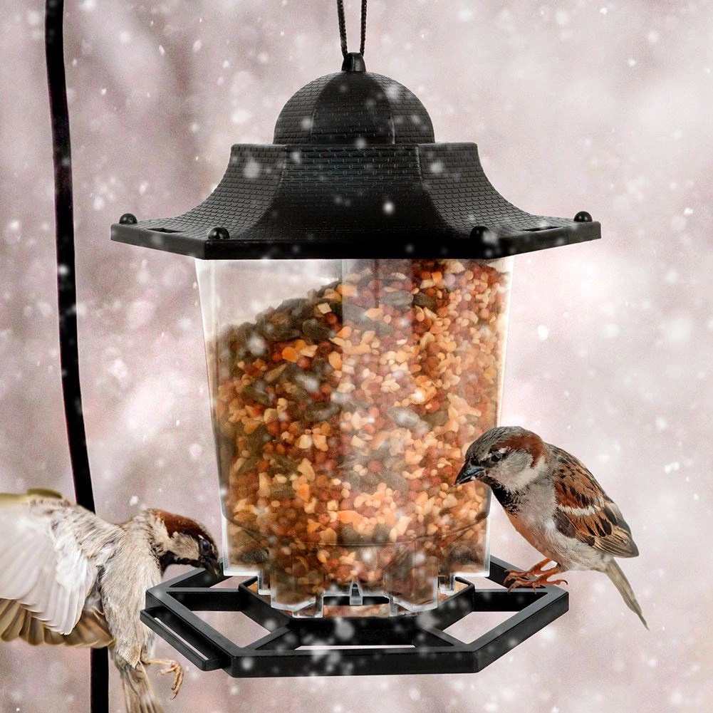 De transparante behuizing van de voeder laat in één oogopslag zien wanneer het tijd is om zaden bij te vullen. Geen giswerk – je weet altijd hoeveel voer er nog over is.