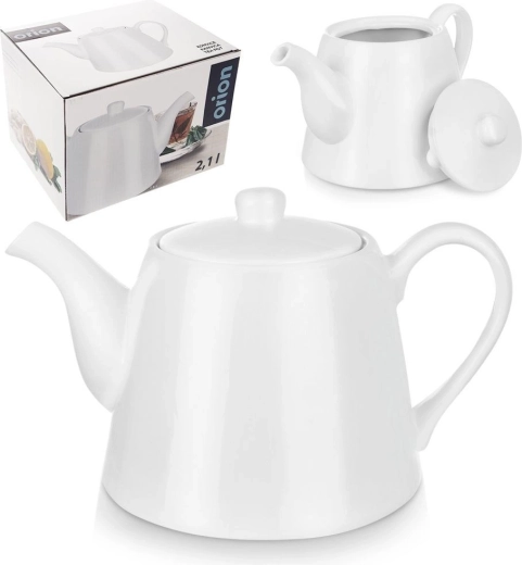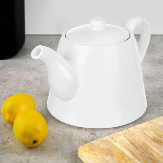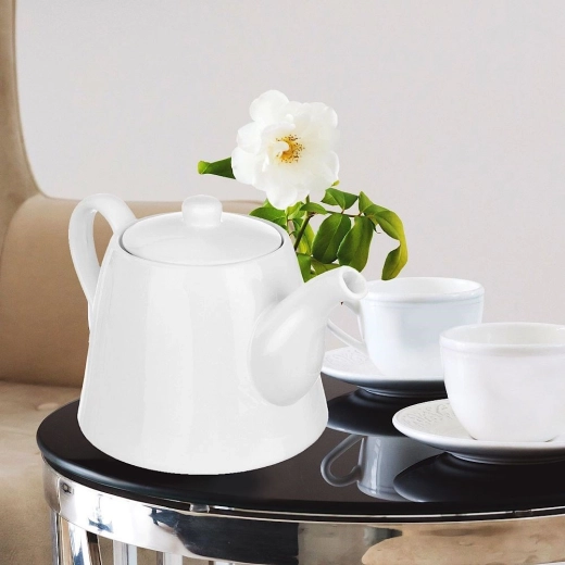 De populaire en praktische kan van wit porselein vult uw serviesset perfect aan en maakt het mogelijk om grotere hoeveelheden van uw favoriete drank te bereiden voor familie en gasten. Dankzij het stevige oor en de ergonomische tuit is schenken vloeiend en zonder druppelen, terwijl het goed passende deksel helpt de drank langer warm te houden.