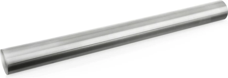 Roestvrijstalen deegroller met een lengte van 40 cm en een diameter van 3,8 cm, ideaal voor nauwkeurig en gelijkmatig uitrollen van fondant, marsepein, zand- of bladerdeeg. Het gladde, naadloze oppervlak zorgt voor minimale kleverigheid en schone resultaten zonder scheuren.