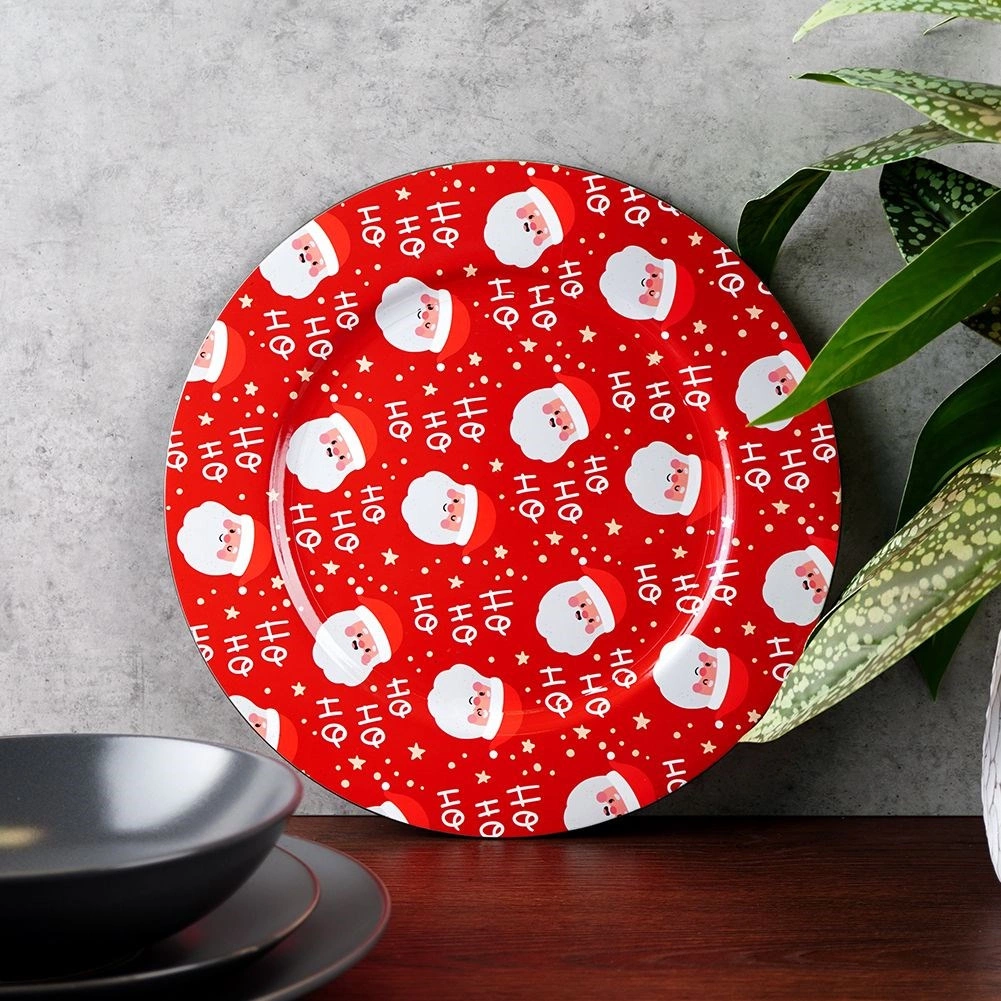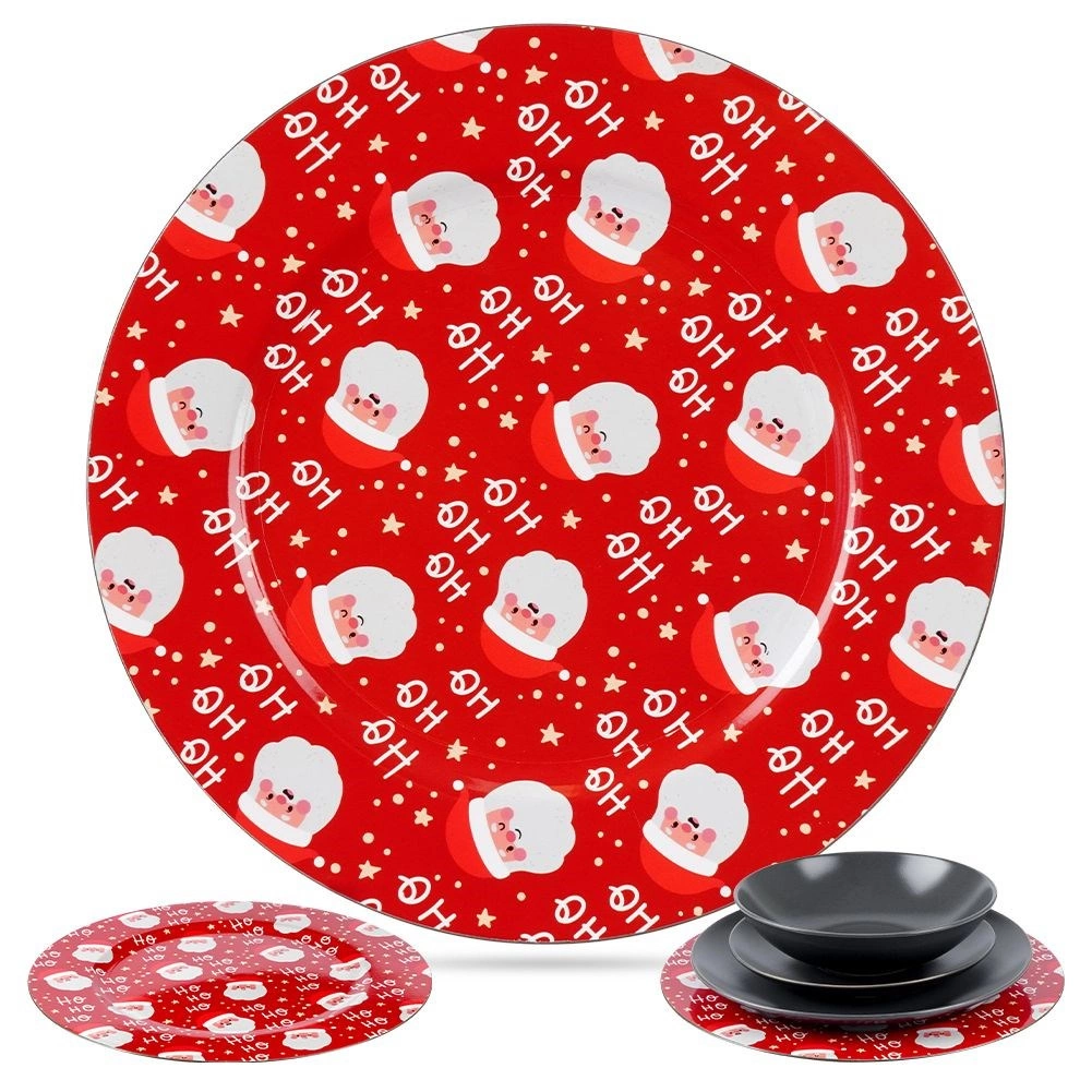 Stijlvolle rode onderzetter onder een bord met een diameter van 33 cm en een vrolijk SANTA-motief, geeft je tafel een feestelijke sfeer. Gemaakt van duurzaam plastic, ideaal als decoratieve charger én als serveerschaal. Dankzij de universele ronde vorm komt hij mooi tot zijn recht onder elk bord en helpt hij een bijzondere tafelsetting te creëren tijdens Kerst.