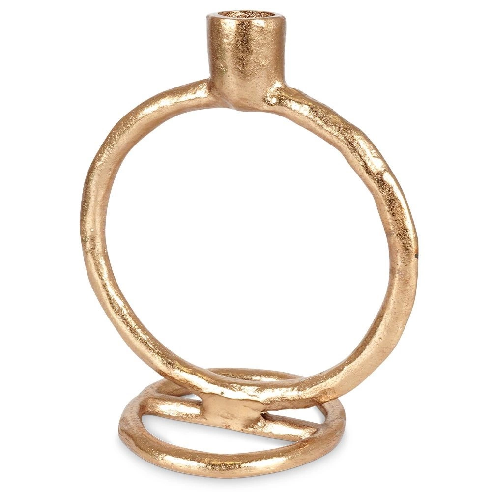 Elegante kandelaar voor één lange kaars, vervaardigd van hoogwaardig aluminium in goud. Dankzij de degelijk afgewerkte constructie en de ronde, stabiele basis houdt hij de kaars veilig op zijn plaats en is hij tegelijk een opvallend designelement in je interieur.